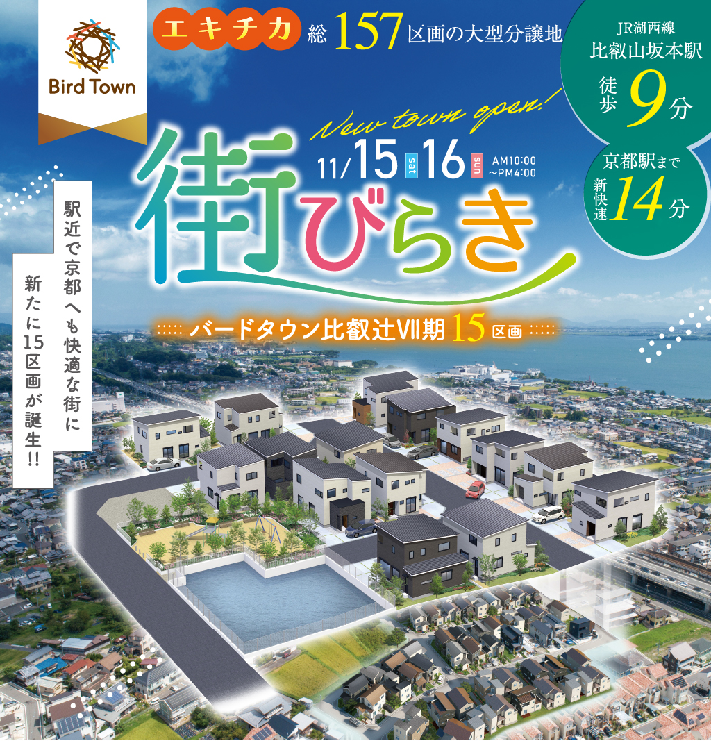 高栄ホームでは、11月15日(土)~16日(日)にバードタウン比叡辻Ⅶ期街びらきを開催します!