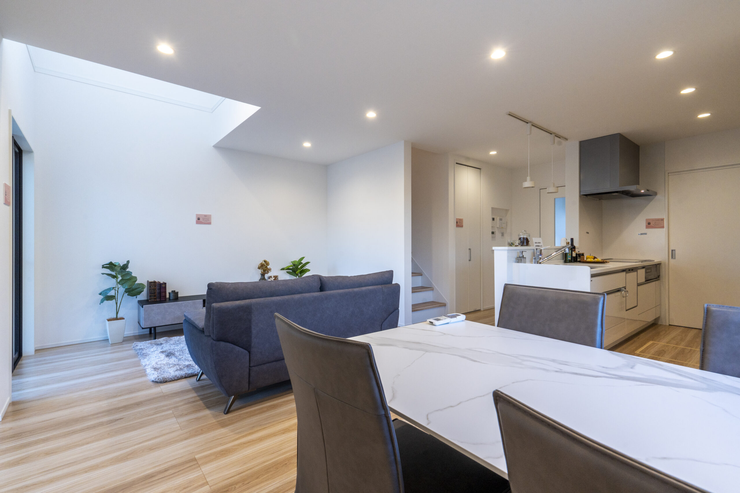 吹き抜けがあるおかげで光がよく通り、家族が集まるLDKを暖かく照らします。